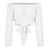 Этот топ, изготовленный из высококачественного полиэфирного волокна, имеет односложный воротник, заниженную линию плеч и длинные рукава-фонарики, придающие изысканный вид..
