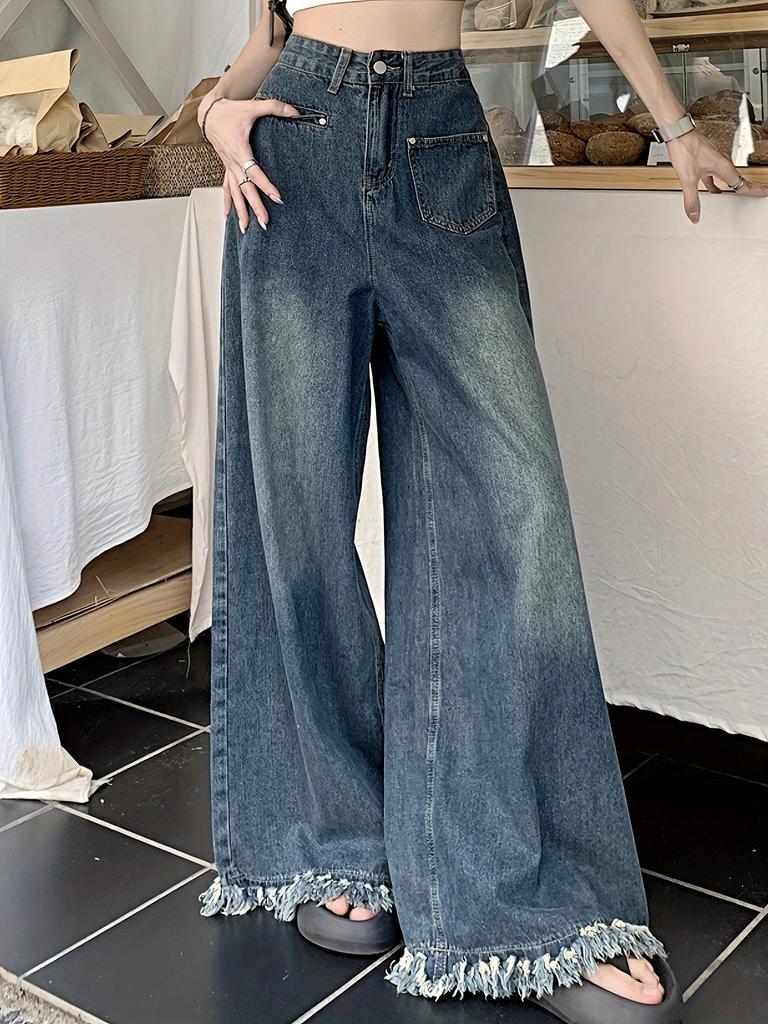 Мешковатые джинсы с потертым краем, свободные джинсы с высокой талией и широкими штанинами в стиле ретро, женские джинсовые джинсы и одежда — купить товар онлайн с бесплатной доставкой по всему миру!