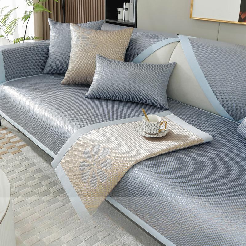 Летняя подушка для дивана из ледяного шелка. Нескользящий летний коврик. Подушка для сиденья. Четыре сезона. Универсальный грязеотталкивающий светильник. Роскошный стиль. Универсальный чехол для дивана.