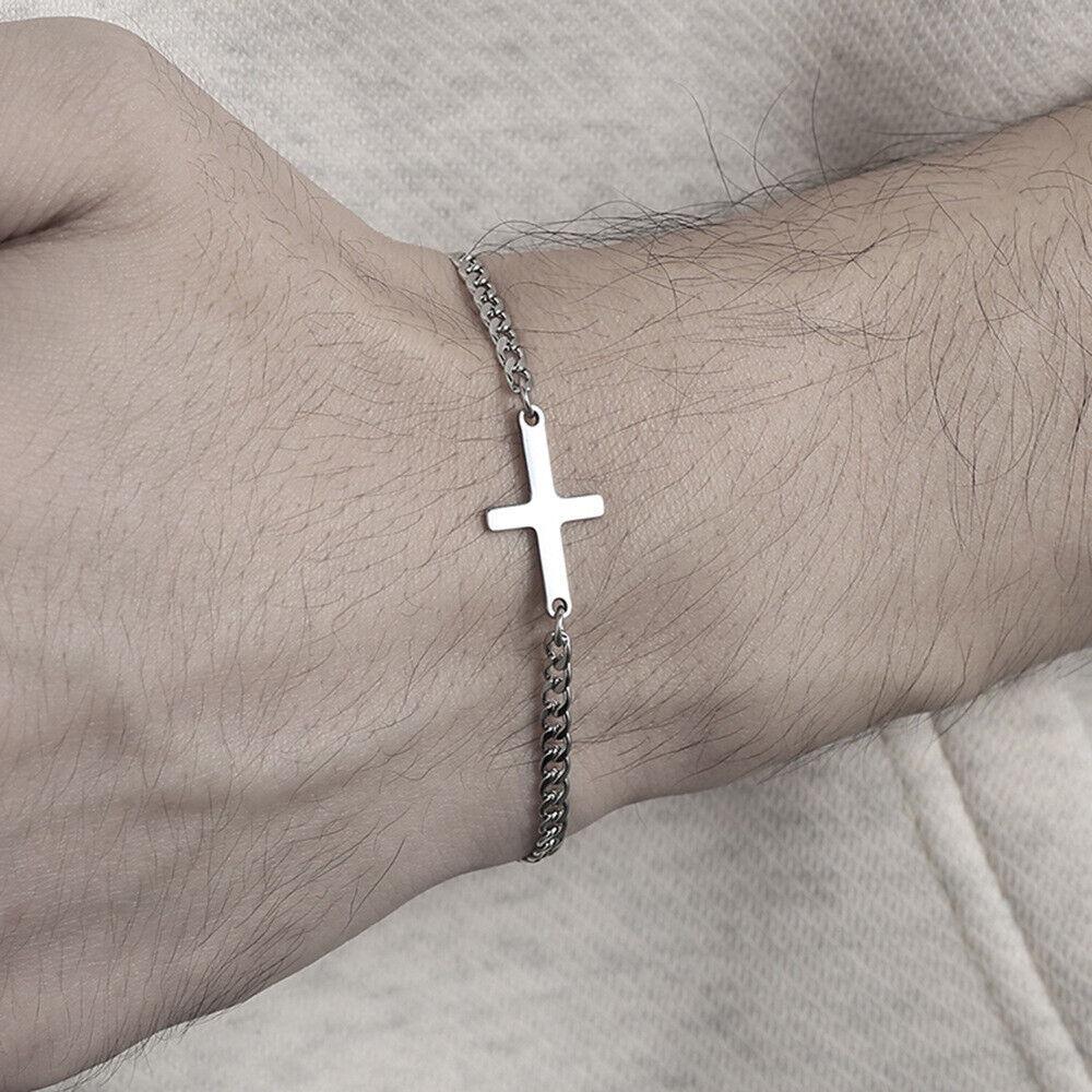 Браслет-браслет из нержавеющей стали с серебряным крестом для мужчин