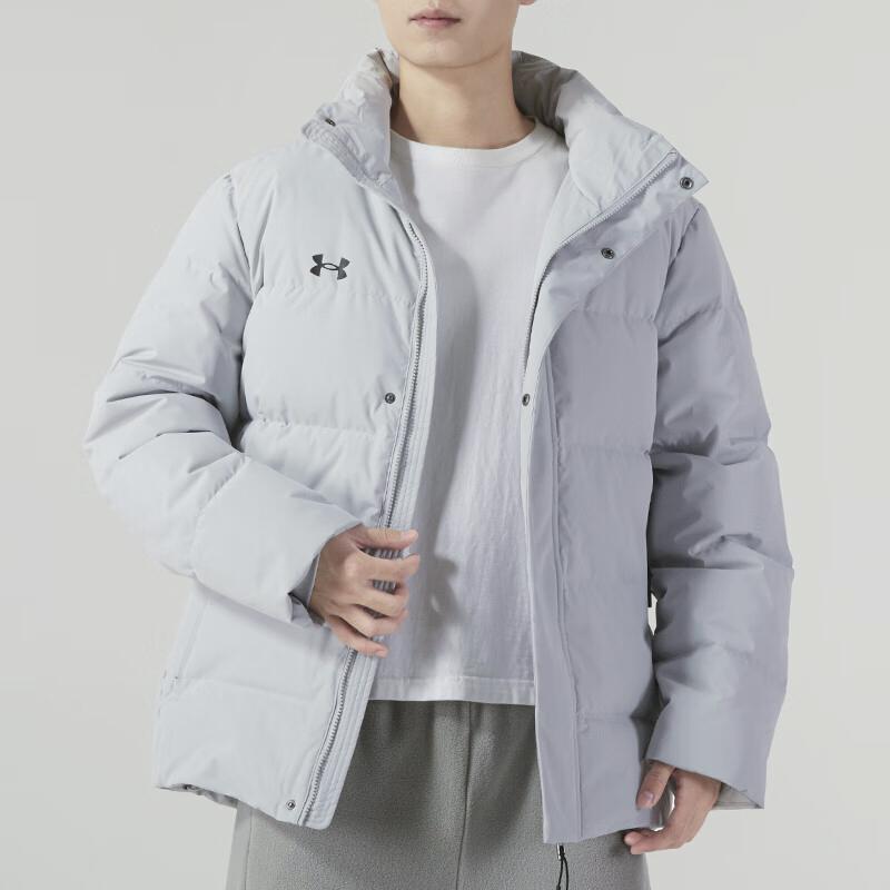 Under Armour Сплошной цвет, повседневный пуховик с воротником-стойкой и длинными рукавами, куртки унисекс, светло-серый 23600802-009
