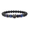 Браслеты-подвески с волком, мужские браслеты из натурального черного агата, оникса, храбрый синий тигровый глаз, эластичные бусины 8 мм, ювелирные изделия из бисера Pulsera