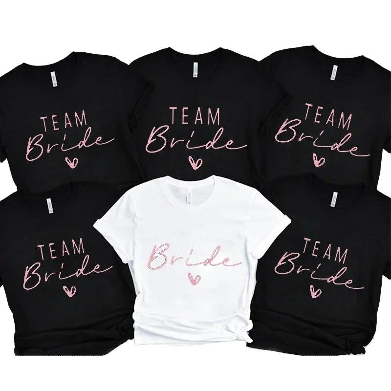 Футболки Team Bride Heart Evjf, футболка унисекс для девичника, свадебные топы для девочек, футболка женская, черная, розовая, белая, одежда Camisetas Mujer