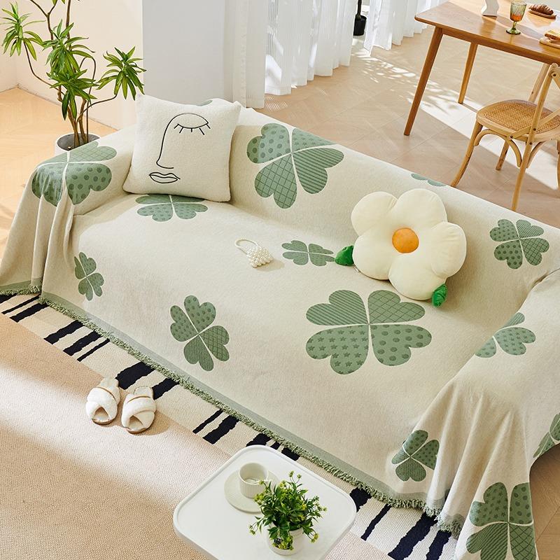 Чехол для дивана с изображением зеленого клевера и шенилла, полотенце Ins Style Four Seasons, универсальный интегрированный чехол для дивана, полное покрывало, одеяло