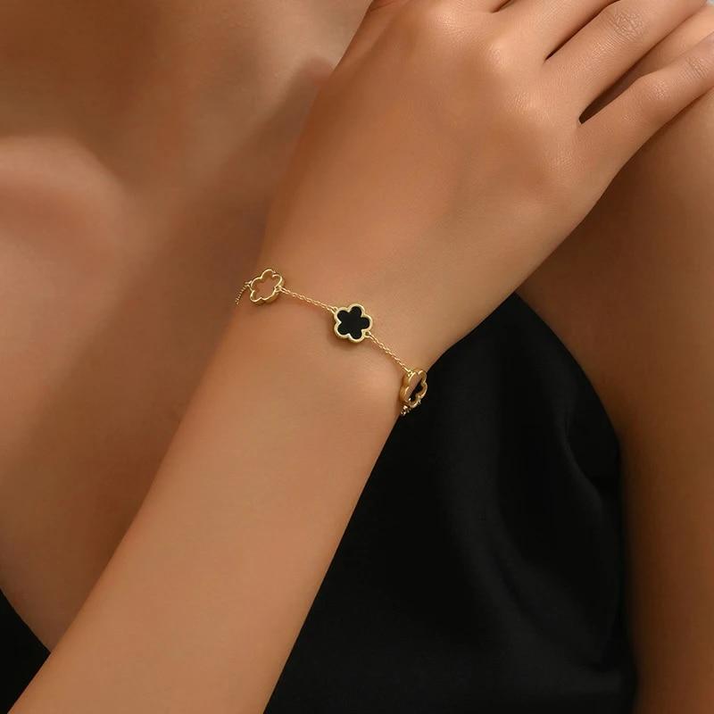 Модный браслет, двусторонний цветок лапчатки, золотой цвет, женские трендовые вечерние ювелирные аксессуары, подарки