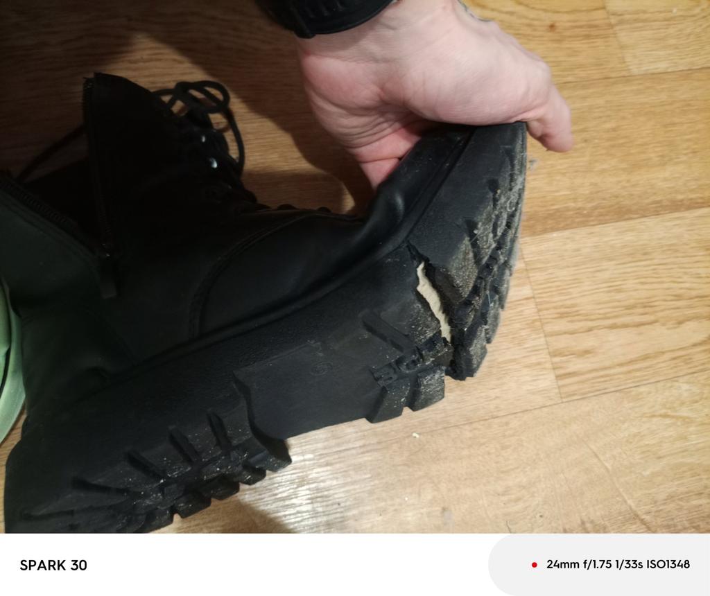 Отвратительные ботинки, подошва треснула пополам через месяц носки