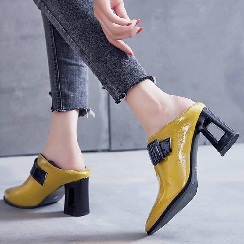 Модные женские туфли двойного назначения на массивном высоком каблуке с острым носком