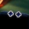 Модные серьги с четырьмя лепестками клевера, легкие роскошные темпераментные цветочные серьги, цепочка на ключицу с счастливой травой, женские серьги, комплект ювелирных изделий