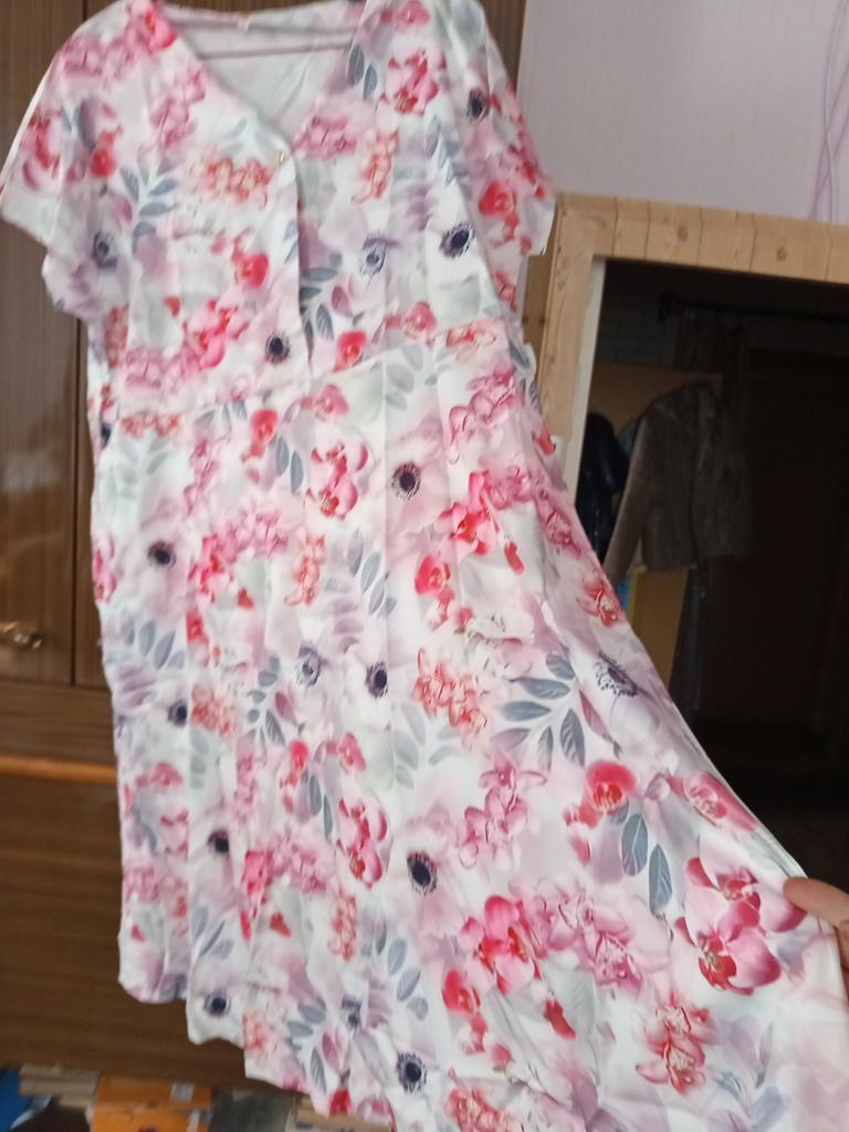 Посылка шла 17 дней в Оренбургскую область. Платье полностью соответствует заявленному. Размер 5XL заказывала на русский 64. Ткань хлопок, сшито аккуратно. Продавца рекомендую!!! На толстух таких платьев не найти! СПАСИБО! Добавляю отзыв по просьбе: с зади подол ассиметричный, как бы рваный. Один клин идёт на скос и короче сантиметров на 15. Одевала платье на работу, обыграла шарфиком. Ткань до тела очень приятная, покрой комфортный. После стирки на 30 градусах не село. Я очень довольна, буду заказывать другого цвета. Спасибо продавцу!