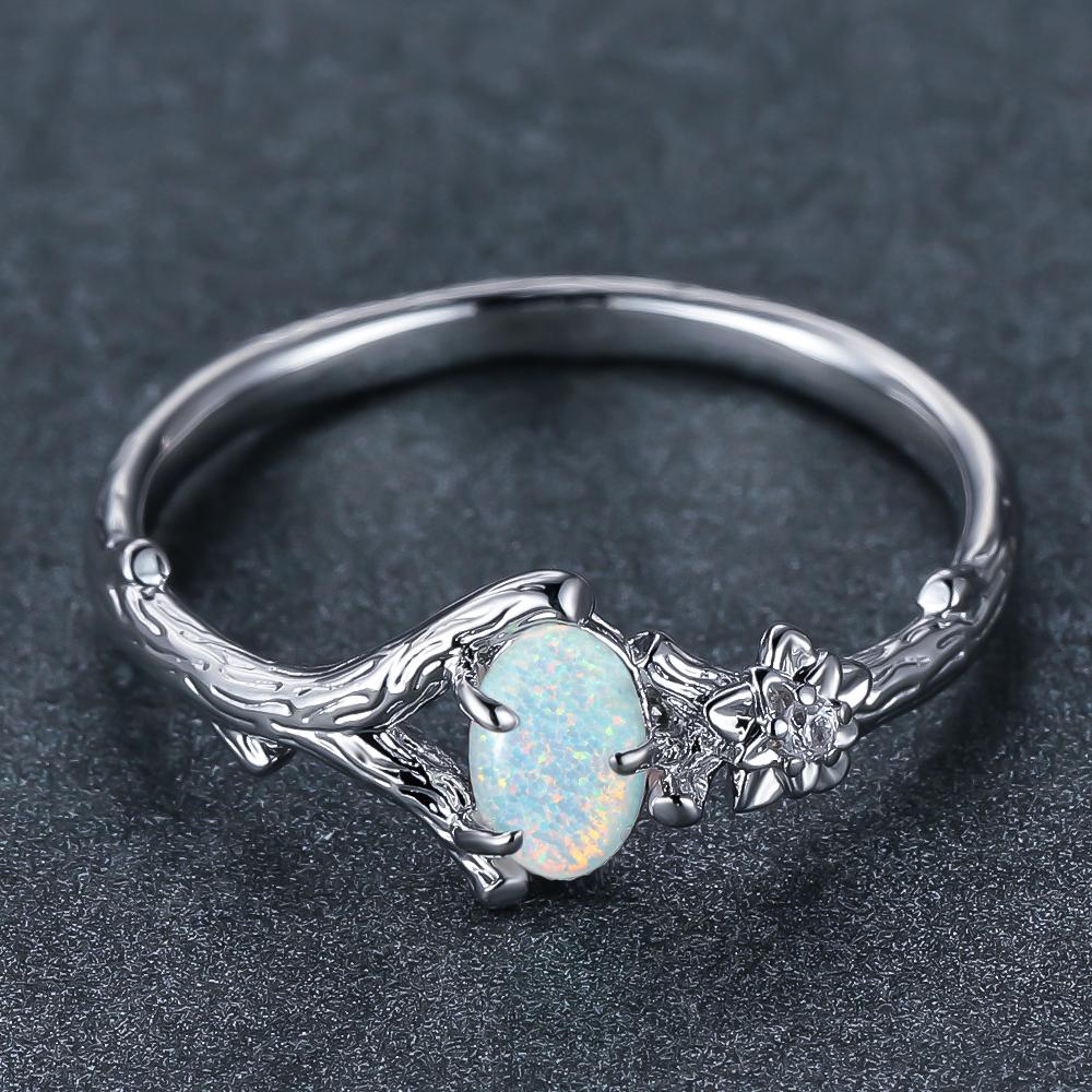 Модное серебряное кольцо со свежей веткой сливы для женщин, обручальные кольца с цирконом, овальный камень, обручальное кольцо, ювелирные изделия, подарки