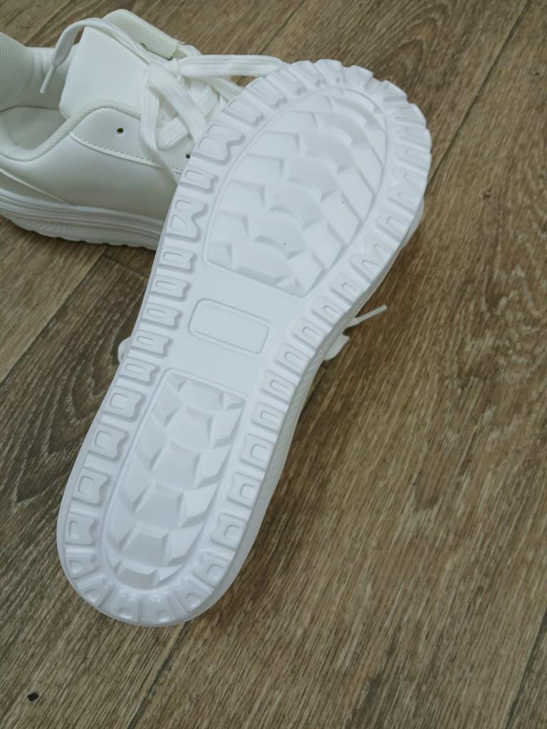 Кроссовки на интересной платформе👟 Видеообзор 🎥 Кроссовки интересны не только за счёт своеобразной подошвы, но и, благодаря блестящим пайеткам, которые ни могут ни привлечь внимание. 🤩 Смотрятся стильно, интересно и оригинально. 🔥 Внешне кроссовки немного отличаются от фото продавца, а именно - отсутствуют вставки серебряного цвета, лишь пайетки. Как бы не принципиально, но факт. Прошиты, проклеены без нареканий. Тут молодцы! 👌 Модель кроссовок подходит на каждый день, но не для спорта, однозначно, потому что платформа узкая и не очень устойчивая. Всё-таки массивность я люблю больше в обуви, нежели минимализм и аккуратность. Ну, либо так сделано, что надо привыкать. 🤷♀️ Верхний материал - хороший, качественный кожзам: матовый, гладкий, довольно мягкий. Ноги сгибаются без проблем. Блёстки - мелкие пайетки. Пришиты хорошо, смотрятся выразительно. Завязываются кроссы на шнурки. Стелька съёмная, не ортопедическая. Подошва резиновая - в меру твердая, не сказала б, что тяжёлая. 🔥 На стопу 24 см взяла 39 и сели идеально. Благо, догадалась, что подошва скрадет пятку немного.☝️ Доставка до Алтайского края месяц живым треком. Этикеток и ярлыков нет. 🏷 Симпатичные, хорошо смотрятся на ножке, но за отличия во внешнем виде звезду снимаю. Увы...