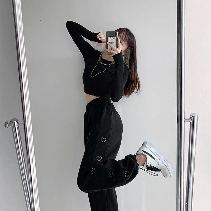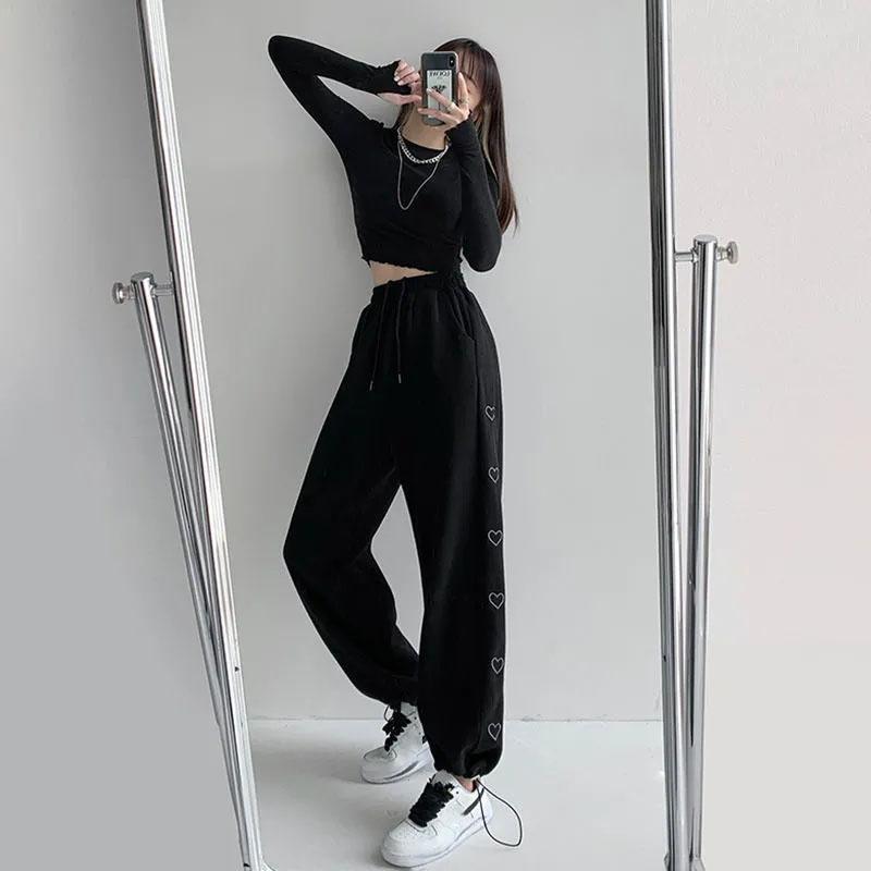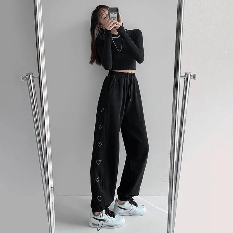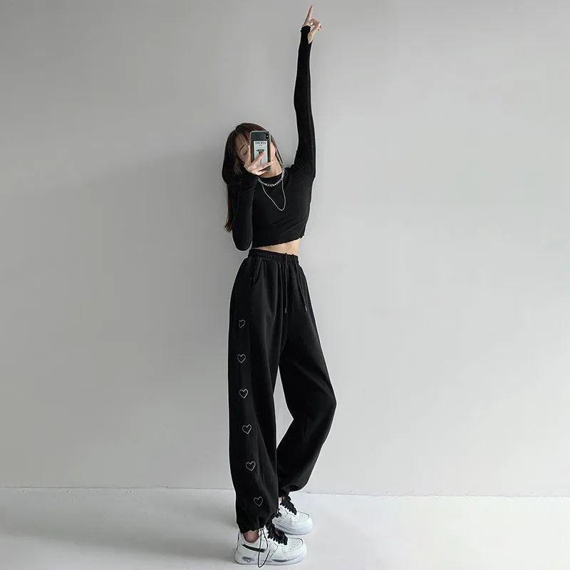 Корейские спортивные штаны, женские весенние спортивные брюки с вышивкой Fsahion, женские свободные повседневные брюки с высокой талией
