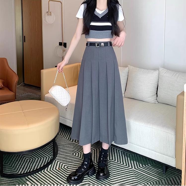 Корейская черно-серая юбка средней длины, женские юбки с высокой талией, женская весна-лето, однотонная плиссированная юбка для школьницы, униформа JK