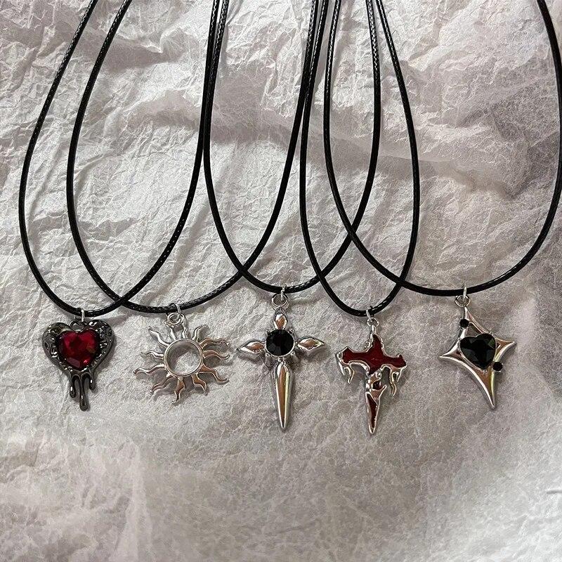 Готическое 90-е кожаное ожерелье с подвеской в форме лавы и звезды для женщин и мужчин, аксессуары цвета антикварного серебра, эстетические ювелирные изделия
