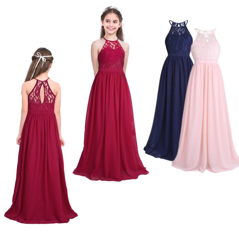 Детское кружевное шифоновое вечернее платье без рукавов с лямкой на шее для принцессы, свадебное платье подружки невесты с цветочным узором для девочек — купить товар онлайн с бесплатной доставкой по всему миру!