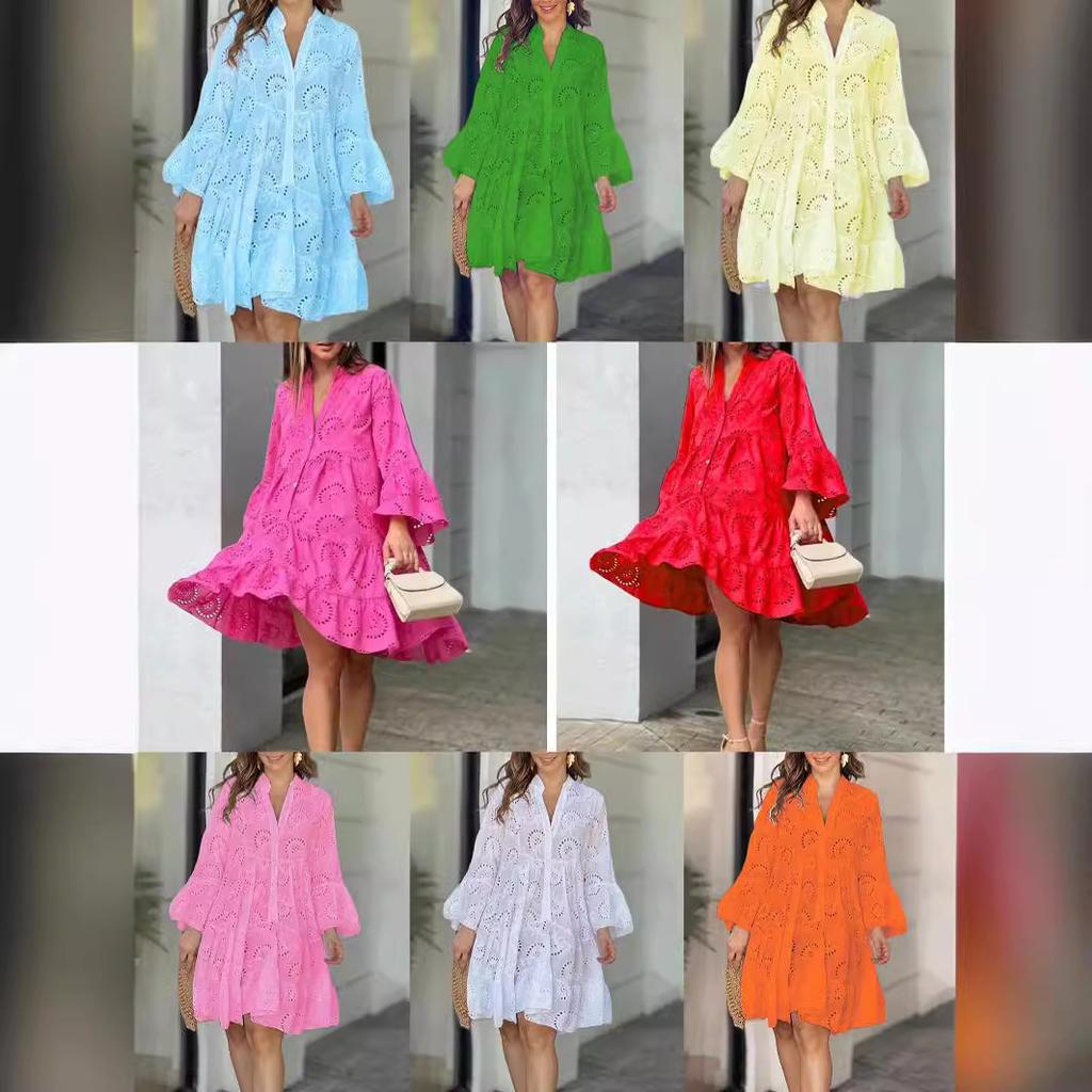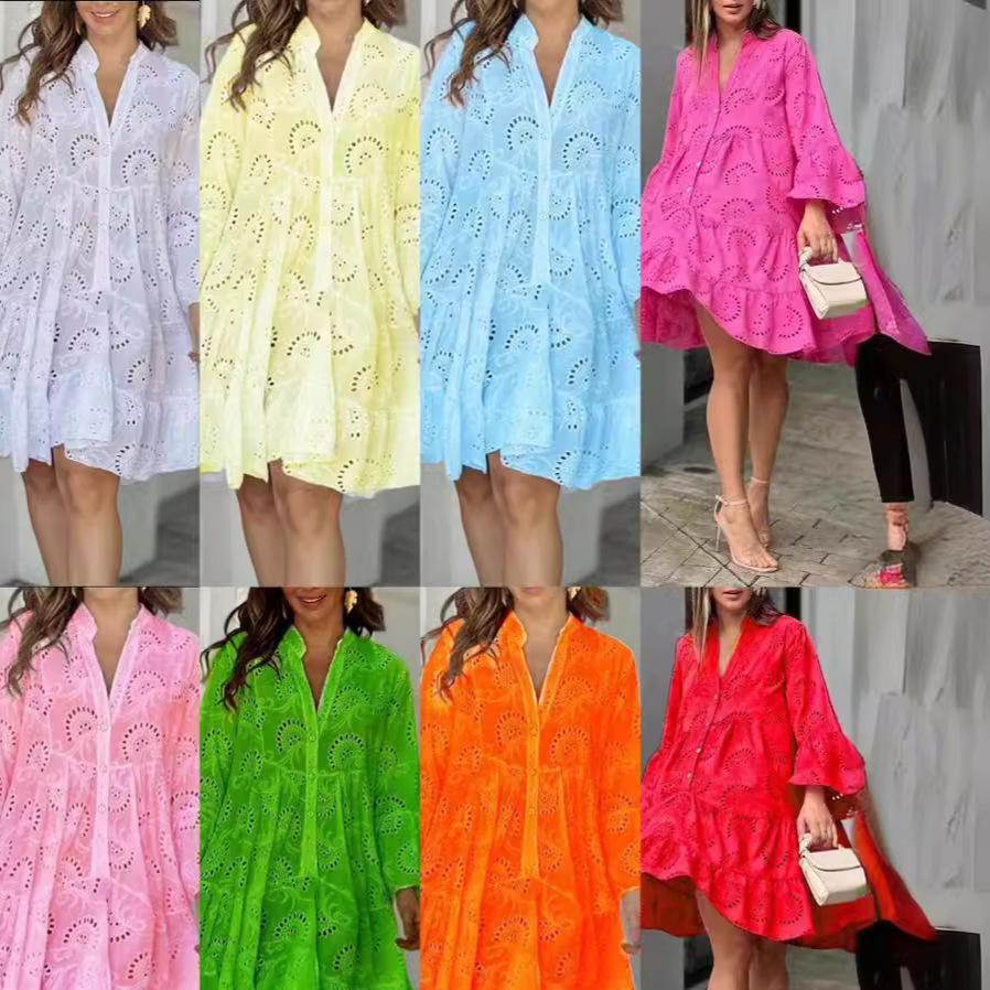 Летнее повседневное однотонное кружевное платье женское элегантное свободное с v-образным вырезом открытое платье с вышивкой женское винтажное пляжное сексуальное мини-платье