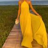 IHUASU Летнее сексуальное однотонное платье с бретелькой на шее, открытой спиной и длиной до пола