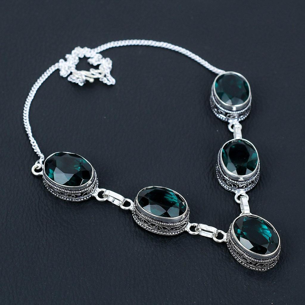 Ожерелье из стерлингового серебра 925 пробы с зеленым турмалином ручной работы, антикварное ювелирное ожерелье, ожерелье из зеленого турмалина для женщин, для подарков.