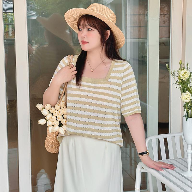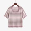 Женская футболка больших размеров с квадратным вырезом в полоску, женские топы с короткими рукавами, летняя свободная трикотажная одежда
