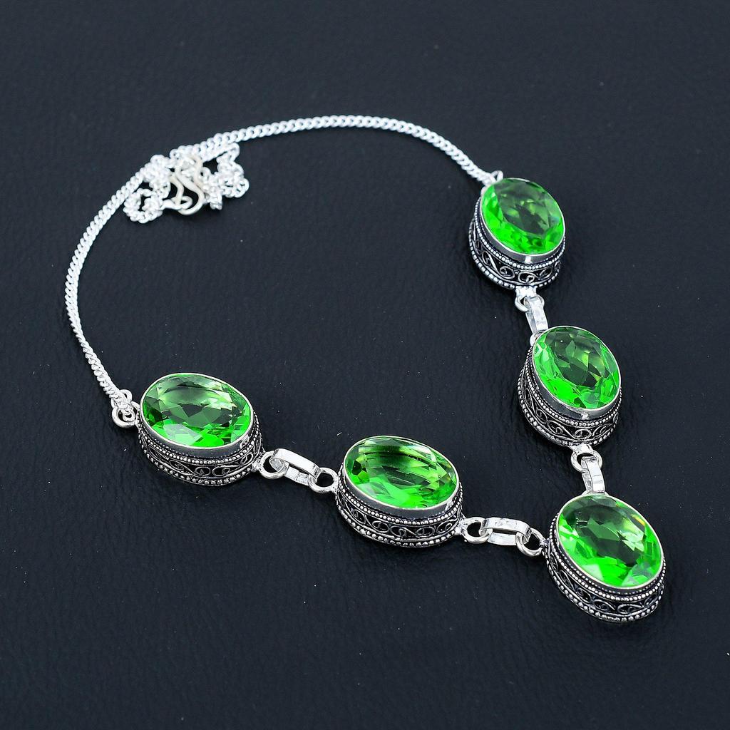 Ожерелье из стерлингового серебра 925 пробы ручной работы из хромдиопсида, антикварное ювелирное ожерелье, хромированное ожерелье для женщин, подарки из камня по случаю рождения.