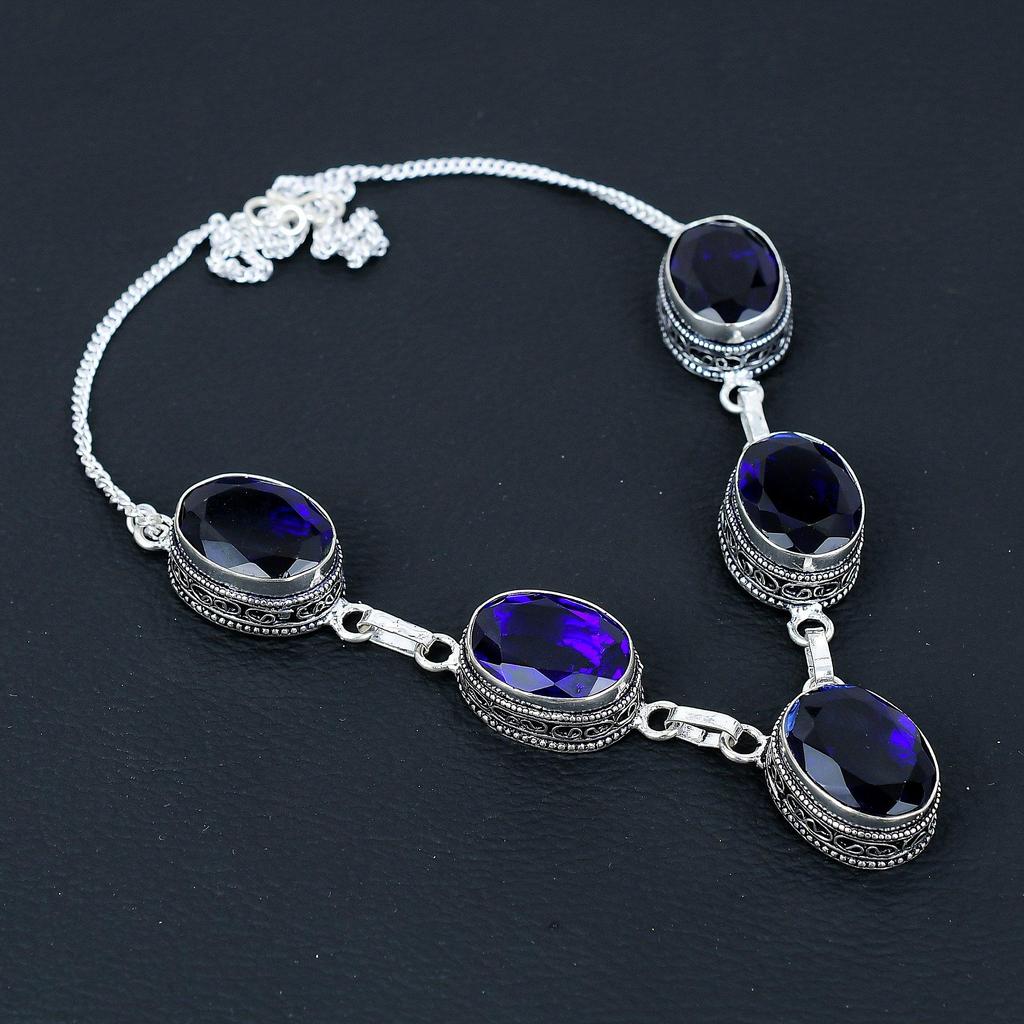 Ожерелье из стерлингового серебра 925 пробы ручной работы с синим сапфиром, антикварное ювелирное ожерелье, ожерелье из синего сапфира для женщин, ювелирные изделия для подарков.