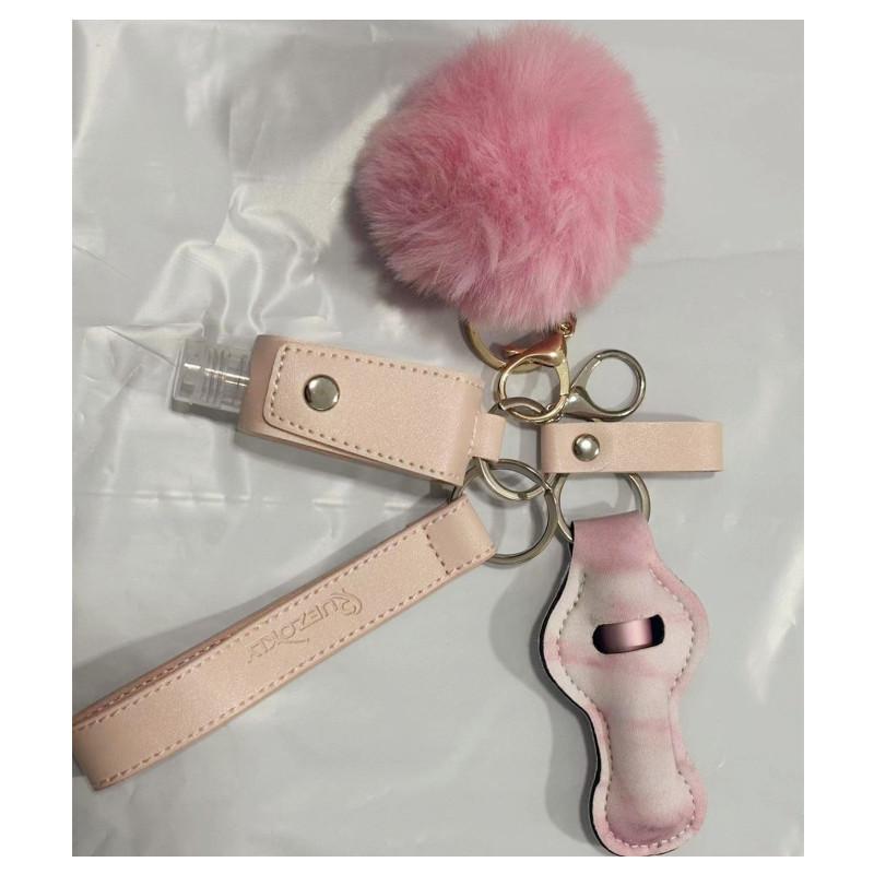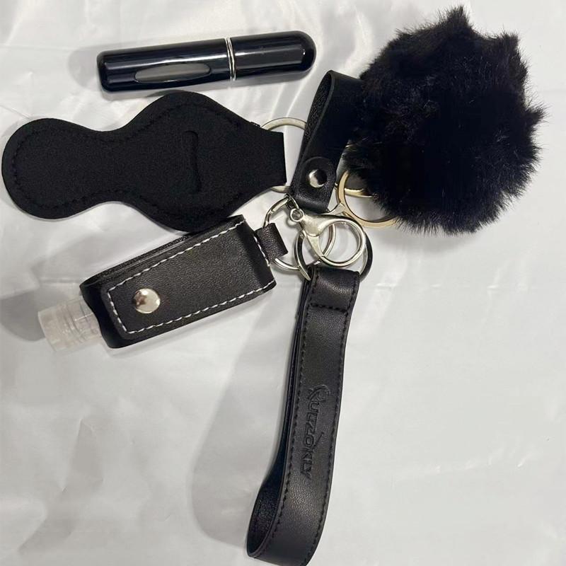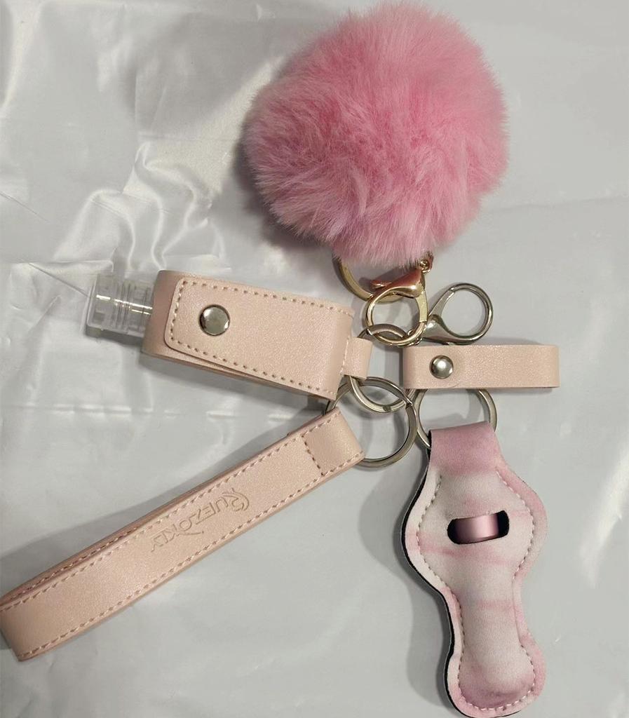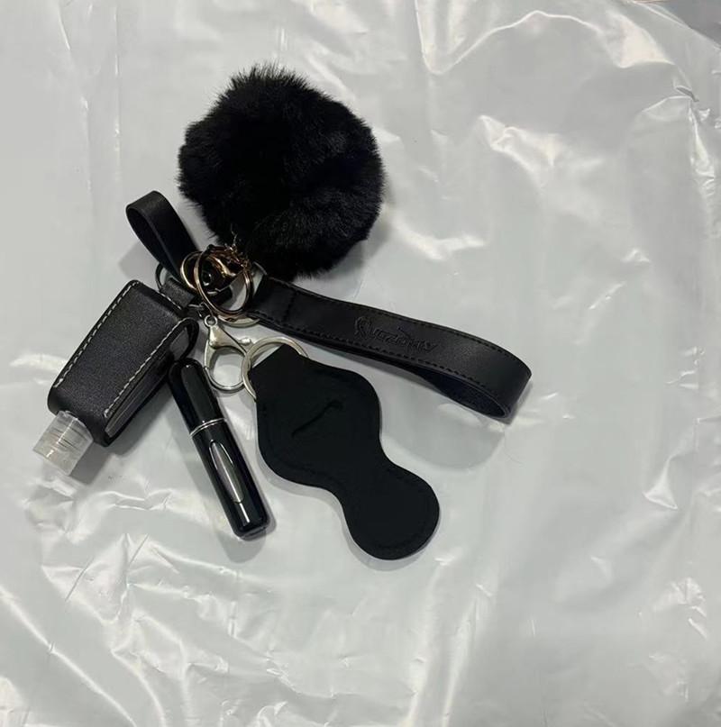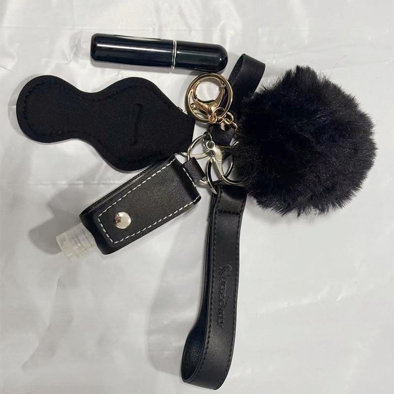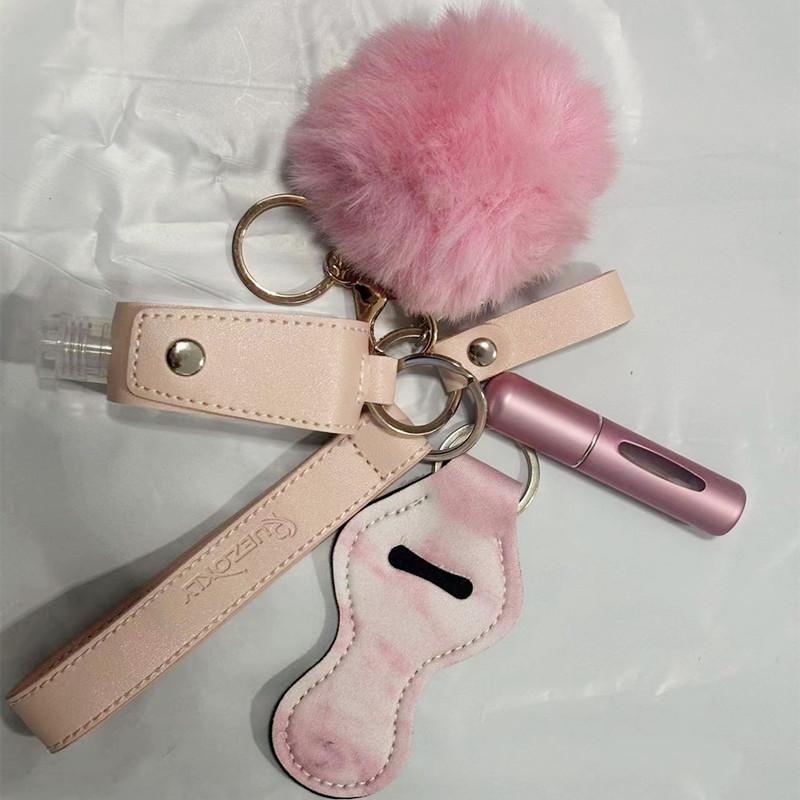 Держатель для гигиенической помады, набор ключей, 30 мл, флакон с дезинфицирующим средством для рук, браслет-брелок из искусственной кожи, брелок для женщин, 5 мл, пустой флакон для духов, помпон