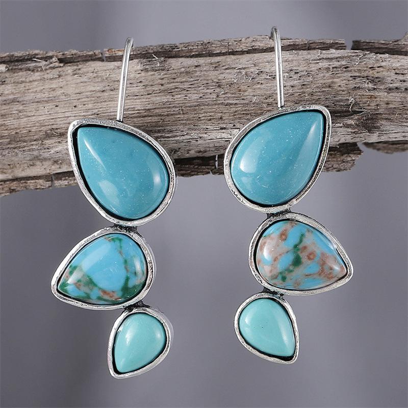 Новые ретро-богемные серьги в форме капель в стиле фэн-шуй с персонализированными и простыми серьгами, инкрустированными бирюзой