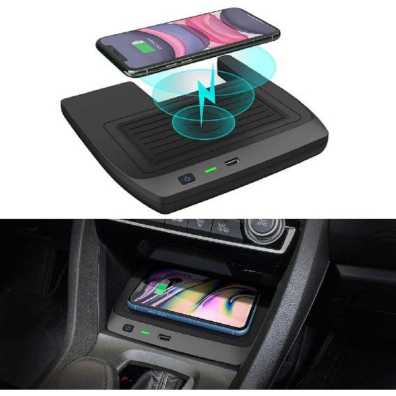Беспроводное зарядное устройство CarQiWireless Civic является новейшим индивидуальным дизайном, применимым к первым 10 гражданским автомобилям 2016, 2017, 2018, 2019, 2020, 2021 годов, без оригинальной функции беспроводной зарядки, вы можете воспользоваться функцией беспроводной зарядки в автомобиле, это обязательный аксессуар для обновления салона вашего автомобиля. Идеально подходит для Civic Sedan/Civic Four Sedan/Civic Coupe/Civic Si Coupe/Civic Hatchback/Civic Type REtc.。