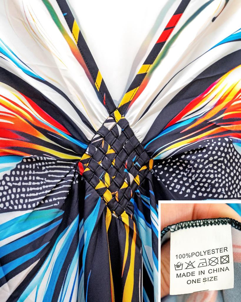 EDOLYNSA Boho красочный принт бабочки ручной вязки V-образным вырезом с рукавами «летучая мышь» плюс размер кафтан платье для женщин 2024 летняя пляжная одежда бикини накидки Q1588