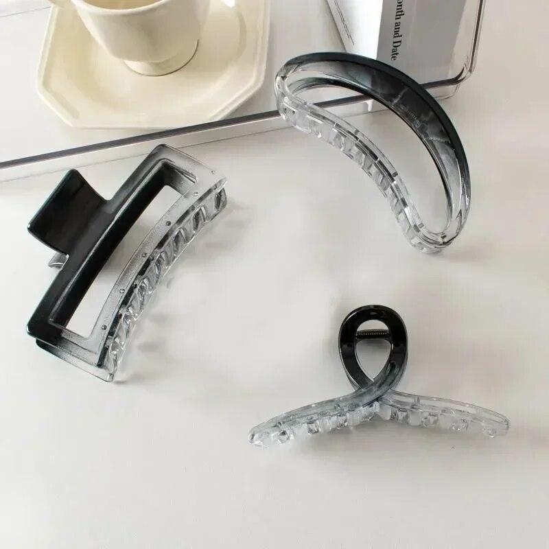 Корейские простые акриловые большие зажимы для волос, прозрачные черные двухцветные зажимы для волос, женские аксессуары для укладки волос