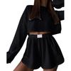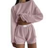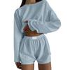 2 шт./компл., женский топ, шорты, наряд с открытой эластичной резинкой на талии, свободные, с длинными рукавами и круглым вырезом, тонкие однотонные дышащие мягкие домашние футболки, комплект с шортами