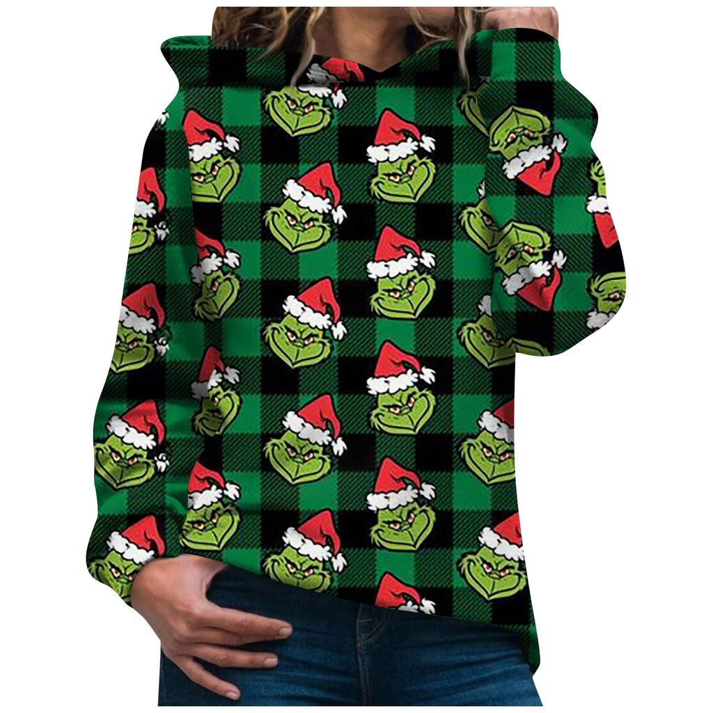 Рождественские толстовки с капюшоном для женщин, повседневный пуловер с длинными рукавами, осенне-зимняя одежда