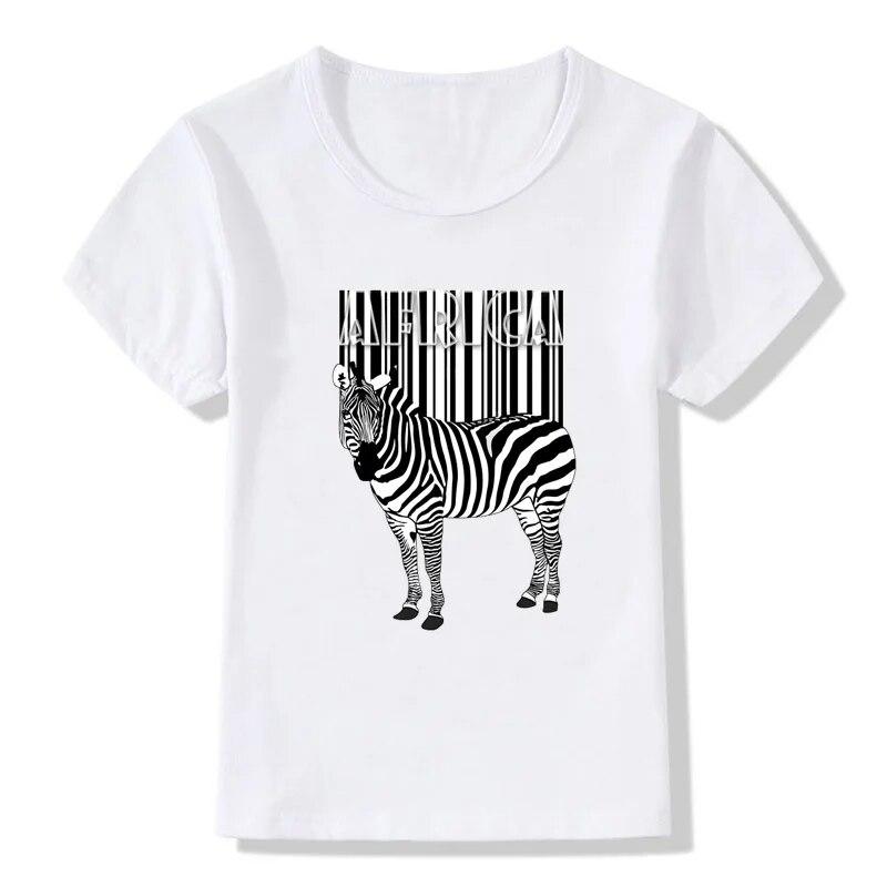 Футболка для мальчиков, топы, детская одежда, летняя повседневная милая белая футболка с принтом зебры и круглым вырезом, детская одежда, топ для мальчиков, футболка для мальчиков