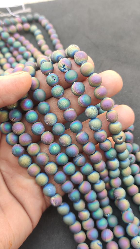 Бусины из натурального драгоценного камня Друзи Агат, разноцветные гладкие круглые, матовая поверхность, бусины размером 6 мм, 8 мм, 10 мм, полная нить 14-15 дюймов, отлично подходят для изготовления ювелирных изделий