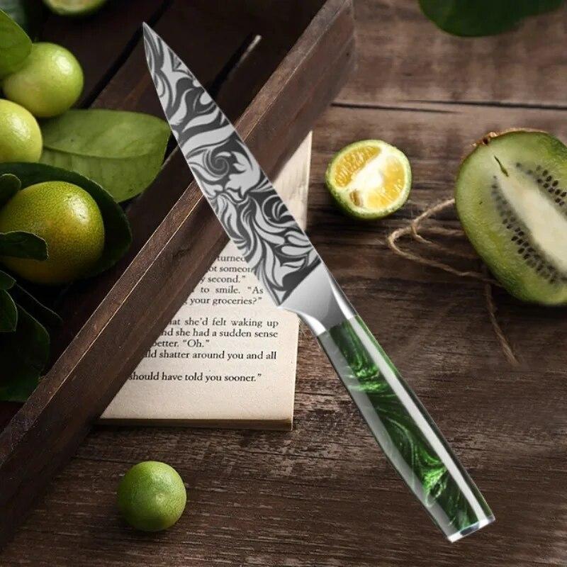 Нож для фруктов из нержавеющей стали, зеленая смола, нежный дамасский узор, нож шеф-повара, универсальный японский нож для хлеба, кухонный нож