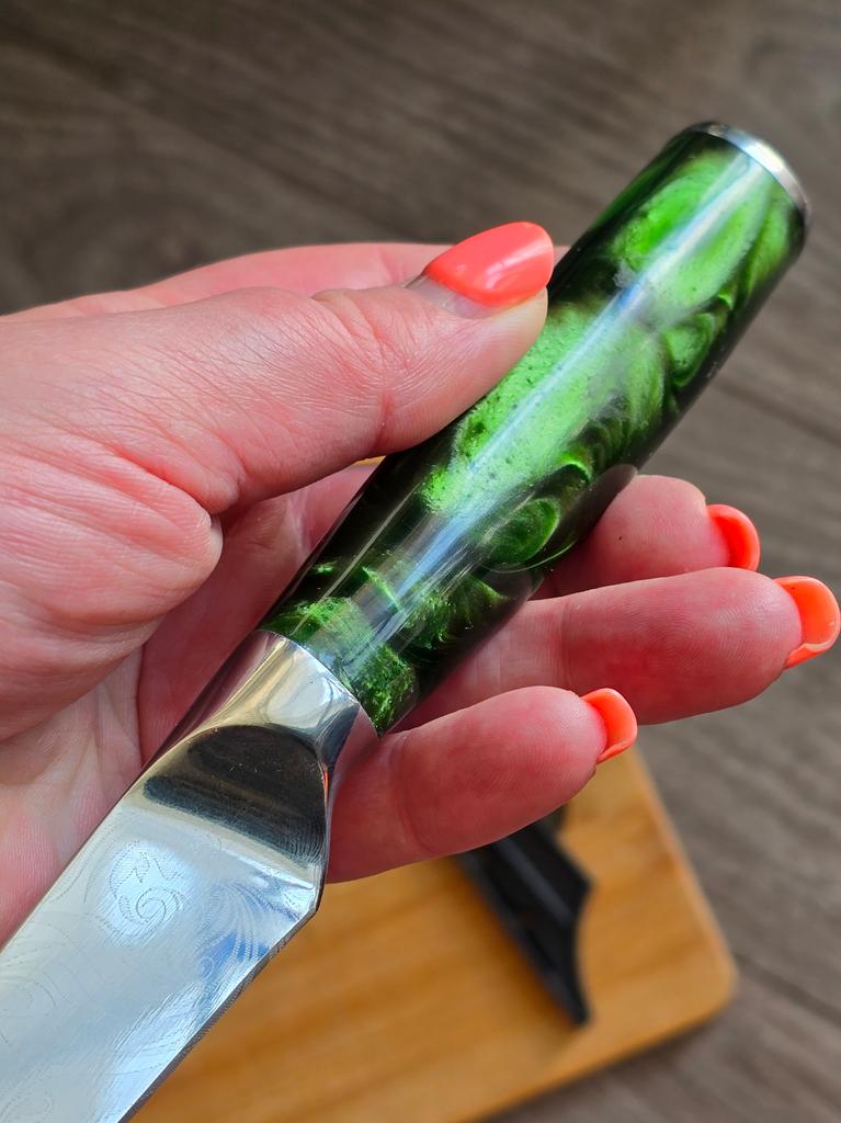 Нож для фруктов из нержавеющей стали, зеленая смола, нежный дамасский узор, нож шеф-повара, универсальный японский нож для хлеба, кухонный нож — купить товар онлайн с бесплатной доставкой по всему миру!