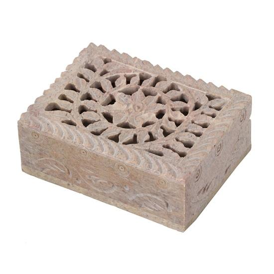 Шкатулка для хранения украшений с цветочной резьбой из мыльного камня 10,16 см. Эта шкатулка ручной работы украшена замысловатой цветочной резьбой на поверхности, изготовленной из высококачественного мыльного камня, что придает ей естественный и изысканный вид.. В шкатулке достаточно места для хранения ваших украшений и небольших сувениров, обеспечивая их безопасность и порядок.. Компактный размер делает его идеальным для вашего комода, тумбочки или туалетного столика.. Будь то подарок или декоративное дополнение к вашему дому, эта уникальная шкатулка для драгоценностей обязательно впечатляет своим красивым дизайном и функциональностью.
