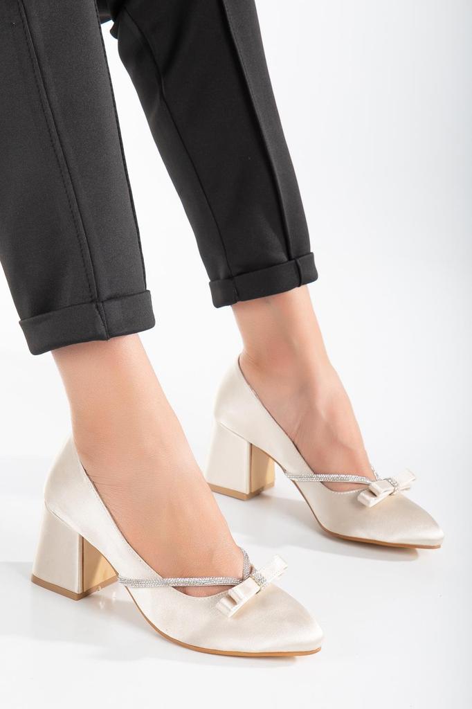 Женские большие туфли из атласной кожи больших размеров с бантиком и высоким каблуком