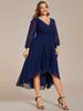 Всегда красивые женские плиссированные шифоновые платья до колена с длинными рукавами и v-образным вырезом, высокие и низкие платья для свадебных гостей больших размеров