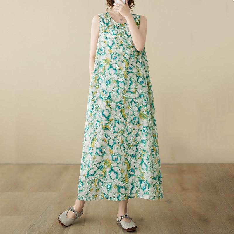 Новое винтажное платье с цветочным принтом без рукавов больших размеров для женщин, повседневное свободное длинное летнее платье — купить товар онлайн с бесплатной доставкой по всему миру!