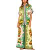 IHUASU Атласная рубашка с лацканами с коротким рукавом и принтом + брюки, повседневный комплект из 2 предметов