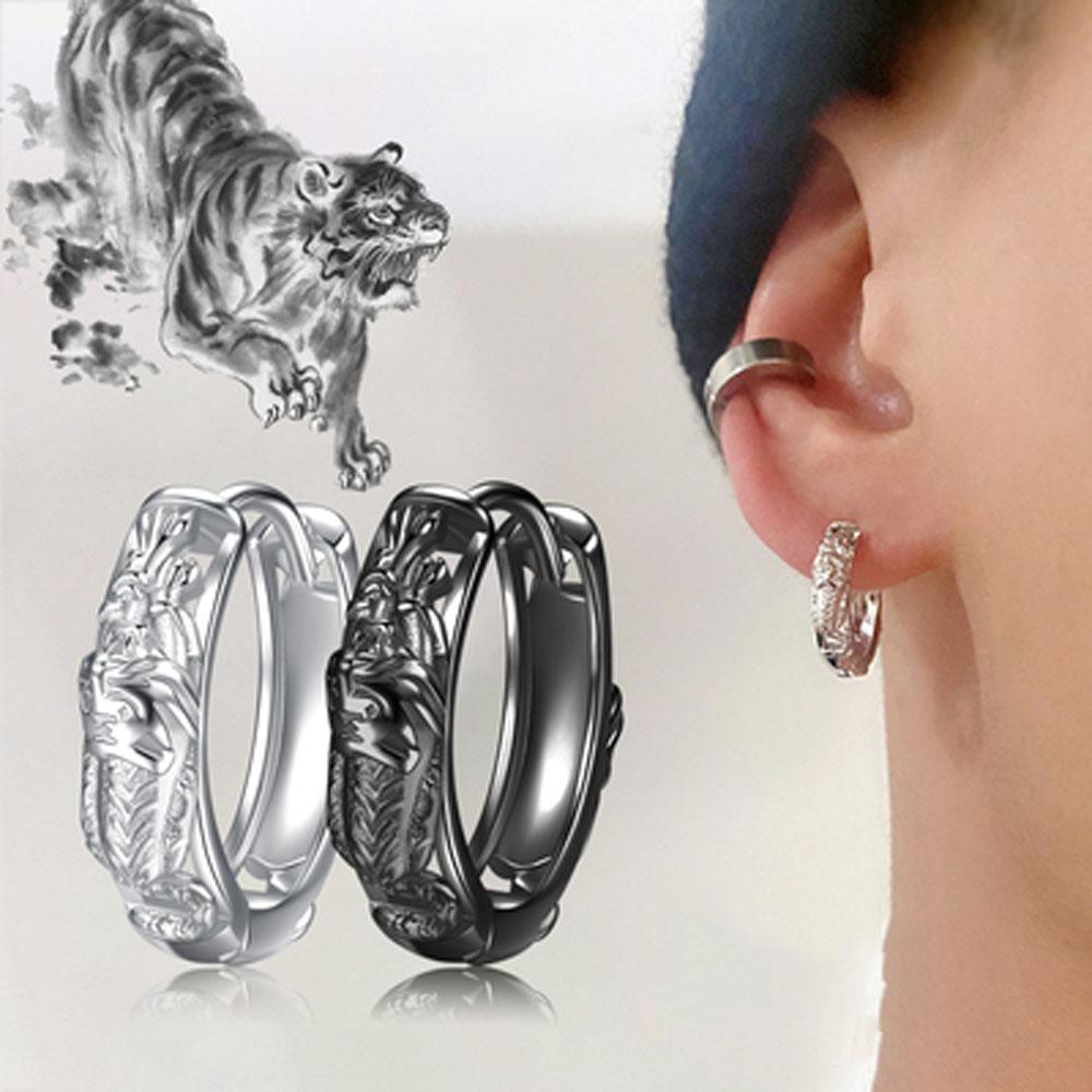 Высокое качество рок-ролл хип-хоп тигр резные серьги-гвоздики серьги-гвоздики ювелирные изделия в стиле панк мужские серьги-кольца