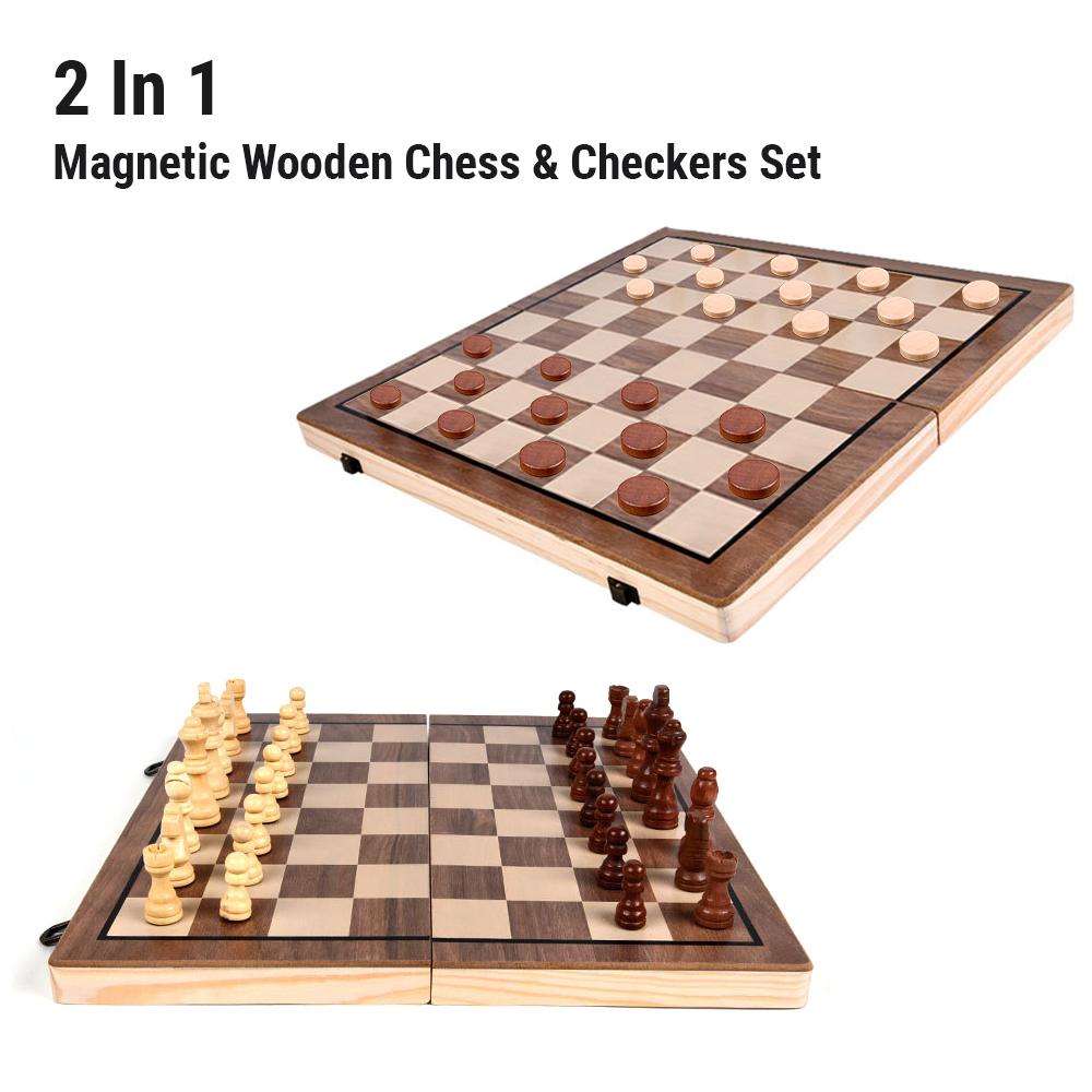 2 в 1 магнитные деревянные шахматные шашки набор портативная дорожная шахматная настольная игра со складной шахматной доской