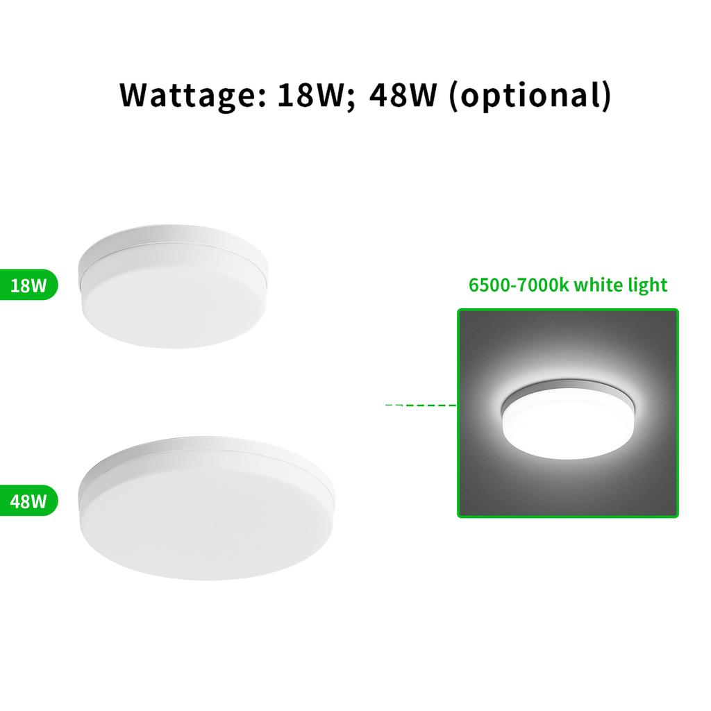 На ваш выбор у нас есть потолочный светильник мощностью 18 Вт/48 Вт с белым светом.