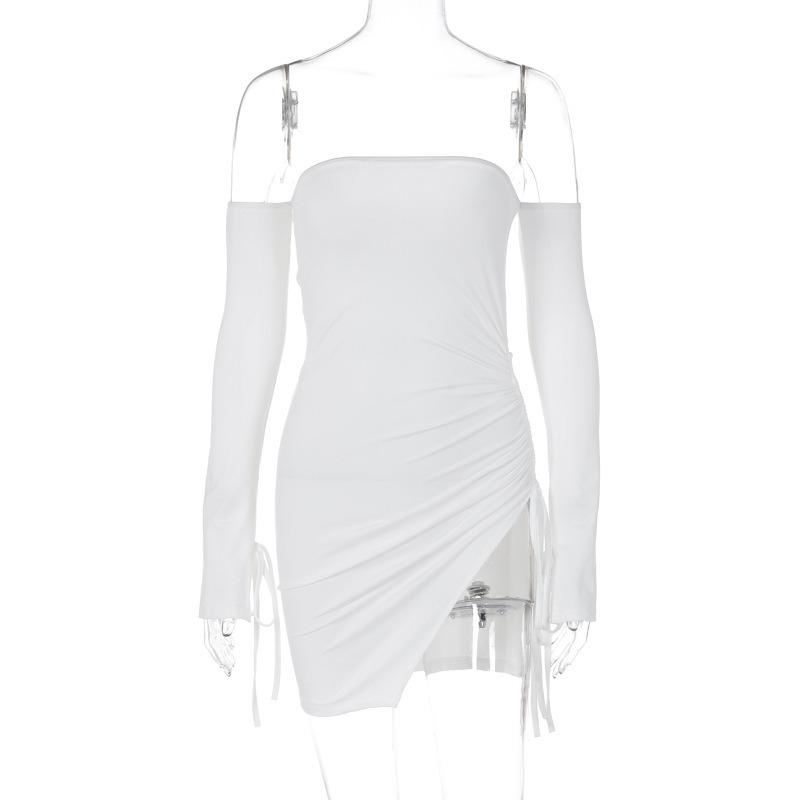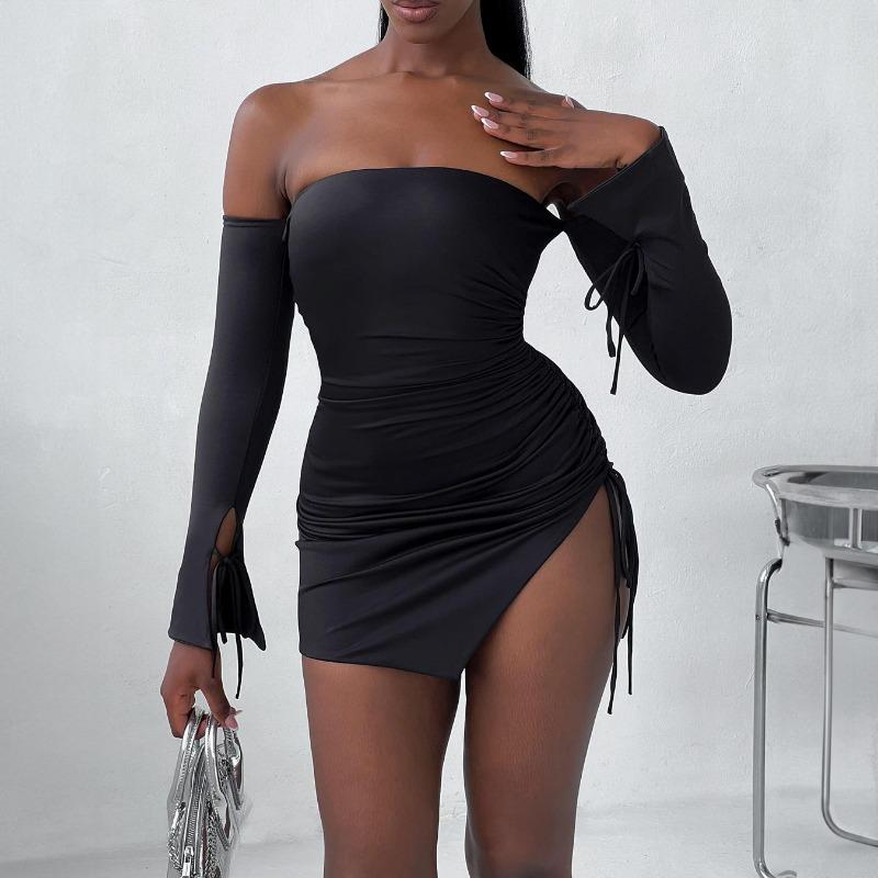Новая мода с открытыми плечами сексуальное платье женское с длинным рукавом приталенное вечернее повседневное платье женское короткое платье с разрезом на бедрах 24143