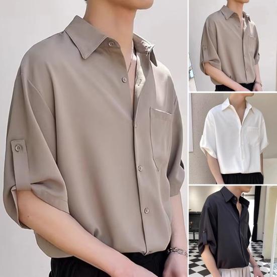Стиль: Ощутите простоту и стиль в этих однотонных мужских рубашках с лацканами и полурукавами.. Классический классический крой создает повседневный, но модный образ, универсальный для различных условий.
