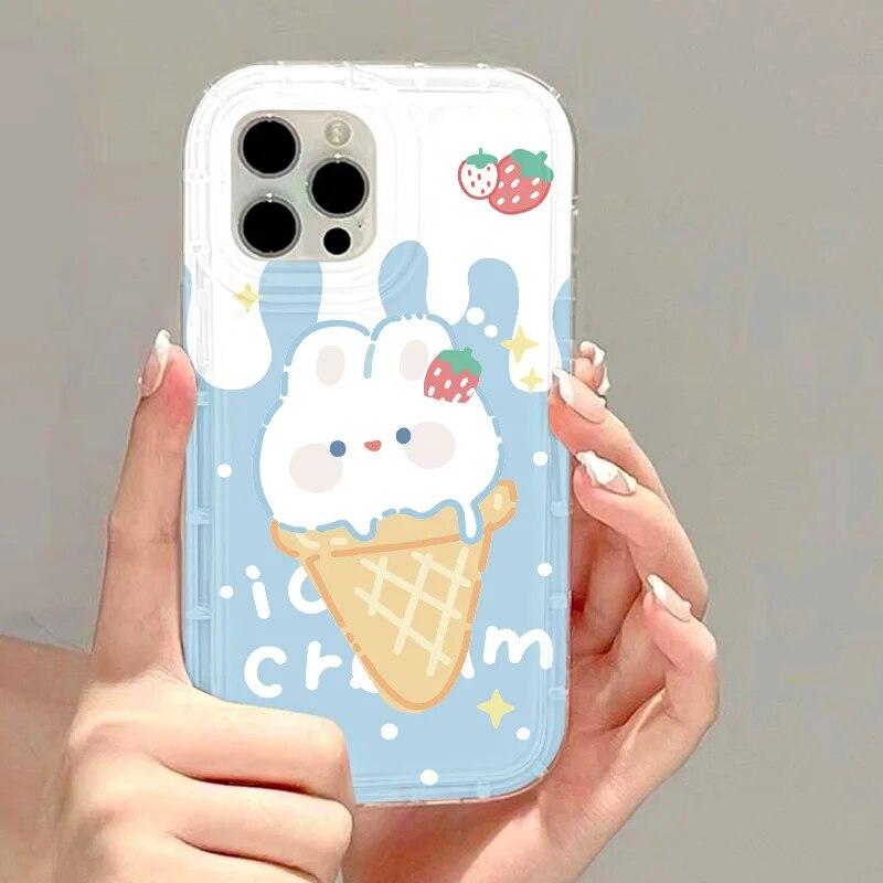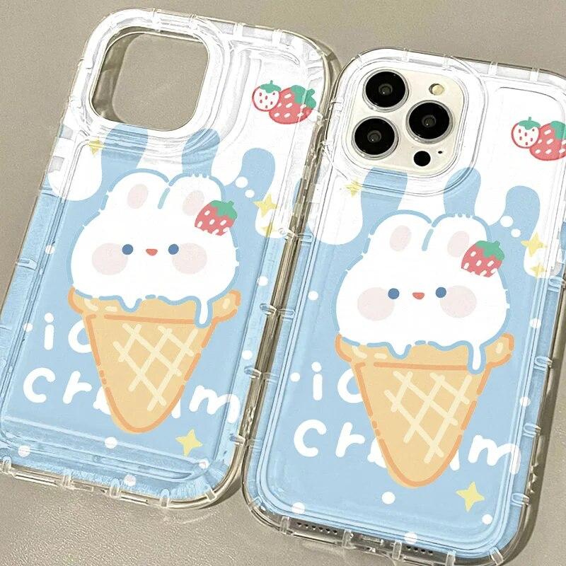 Корейский милый чехол для телефона с мороженым для iPhone 14 Pro, чехол для iPhone 11 15 12 13 Pro Max XS XR X 7 8 Plus SE, чехол-подставка с кольцом-держателем