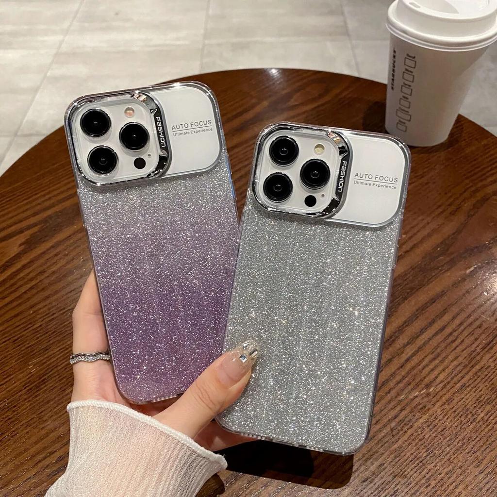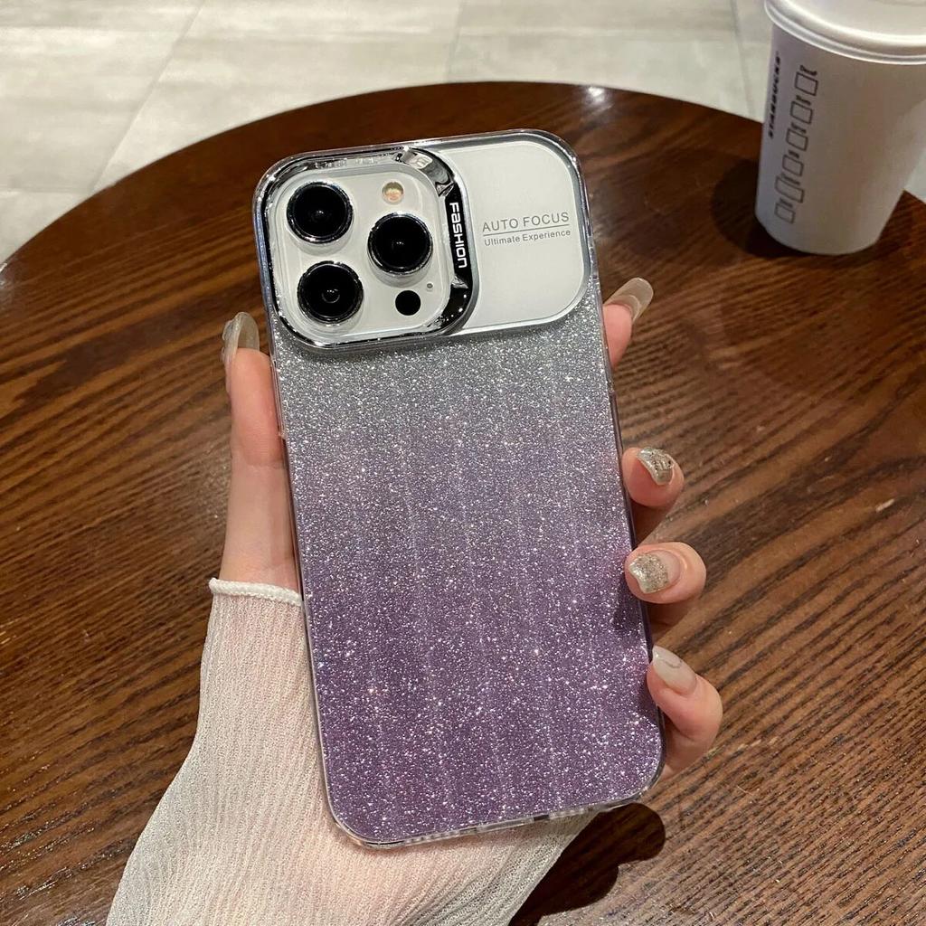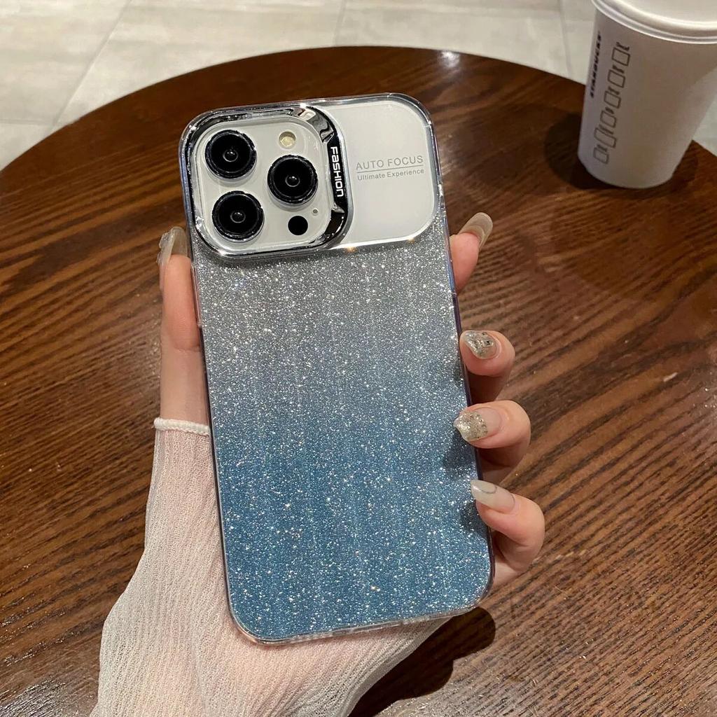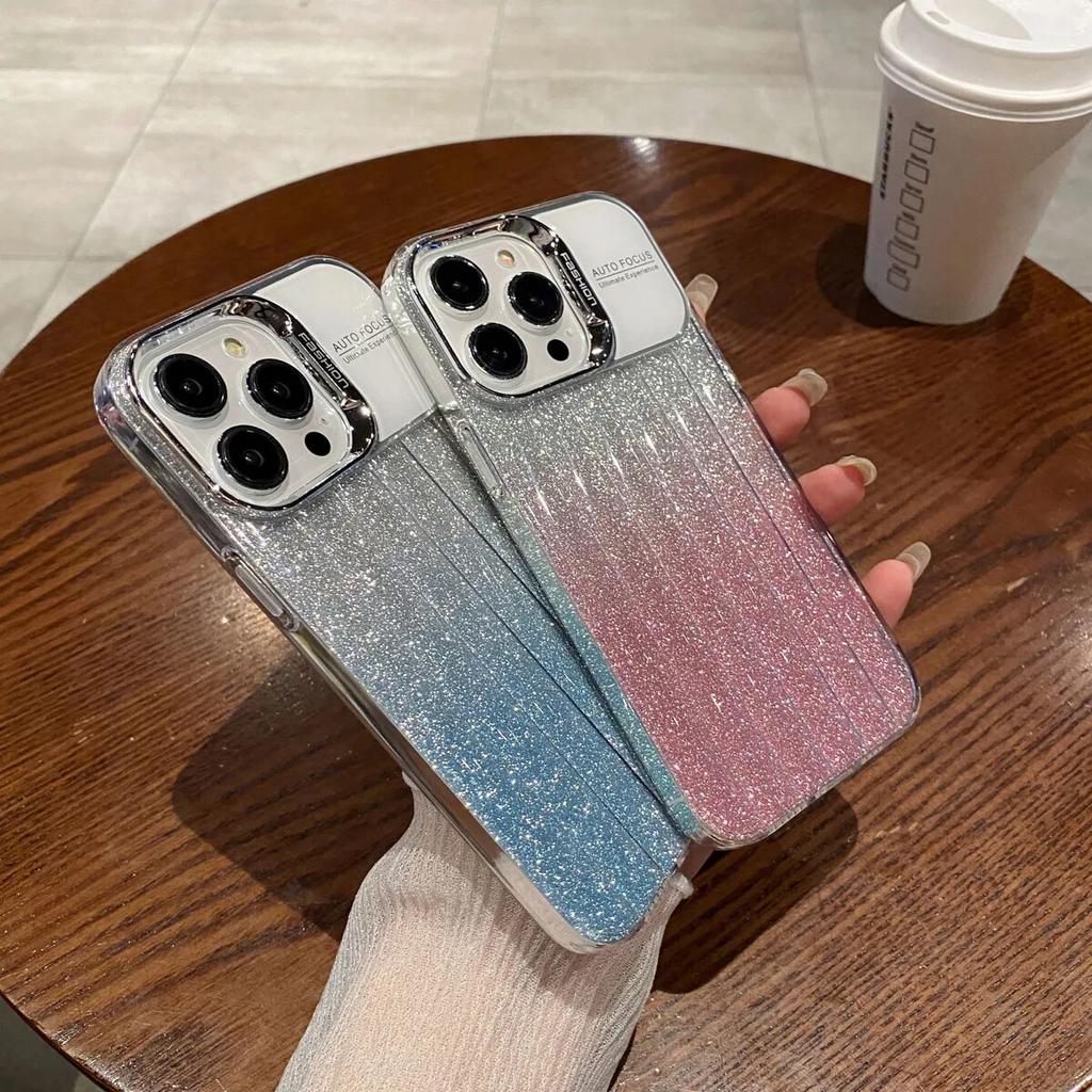 Блестящий чехол для телефона с градиентом для iPhone 13, чехол для iPhone 14 15 Pro 11 12 Pro Max, роскошный противоударный мягкий силиконовый чехол с большим окном