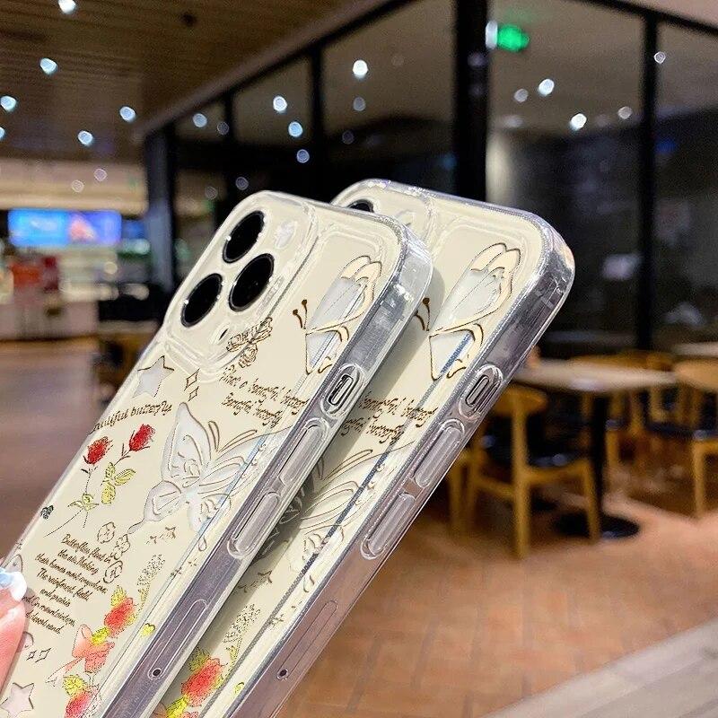 Прозрачный чехол для телефона iPhone 15 Pro Max, чехол для iPhone 11, 12, 13, 14 Pro XS Max XR X 7, 8, 15 Plus SE 2020, INS, чехол с бабочкой и цветком