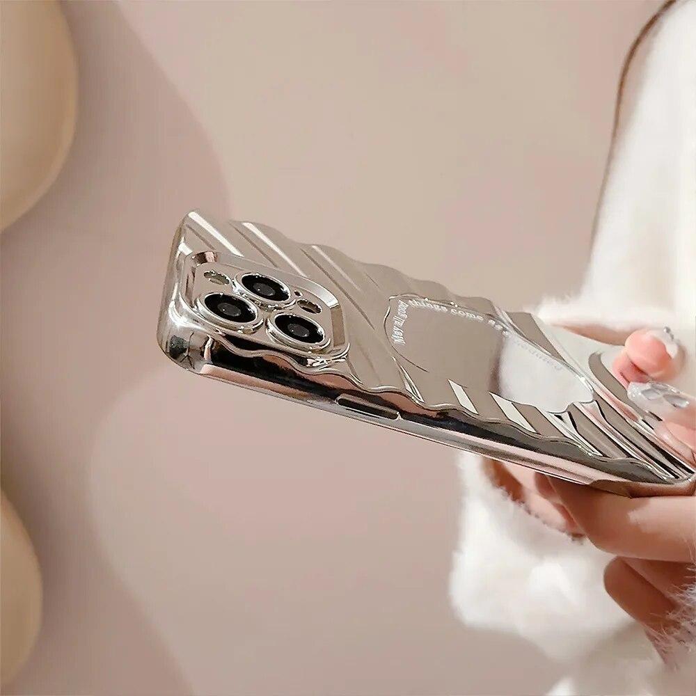 Роскошный зеркальный волнистый чехол для телефона для iPhone 15 14 13 12 Pro Max X XS XR 8 7 Plus SE 2022, мягкий противоударный чехол-бампер